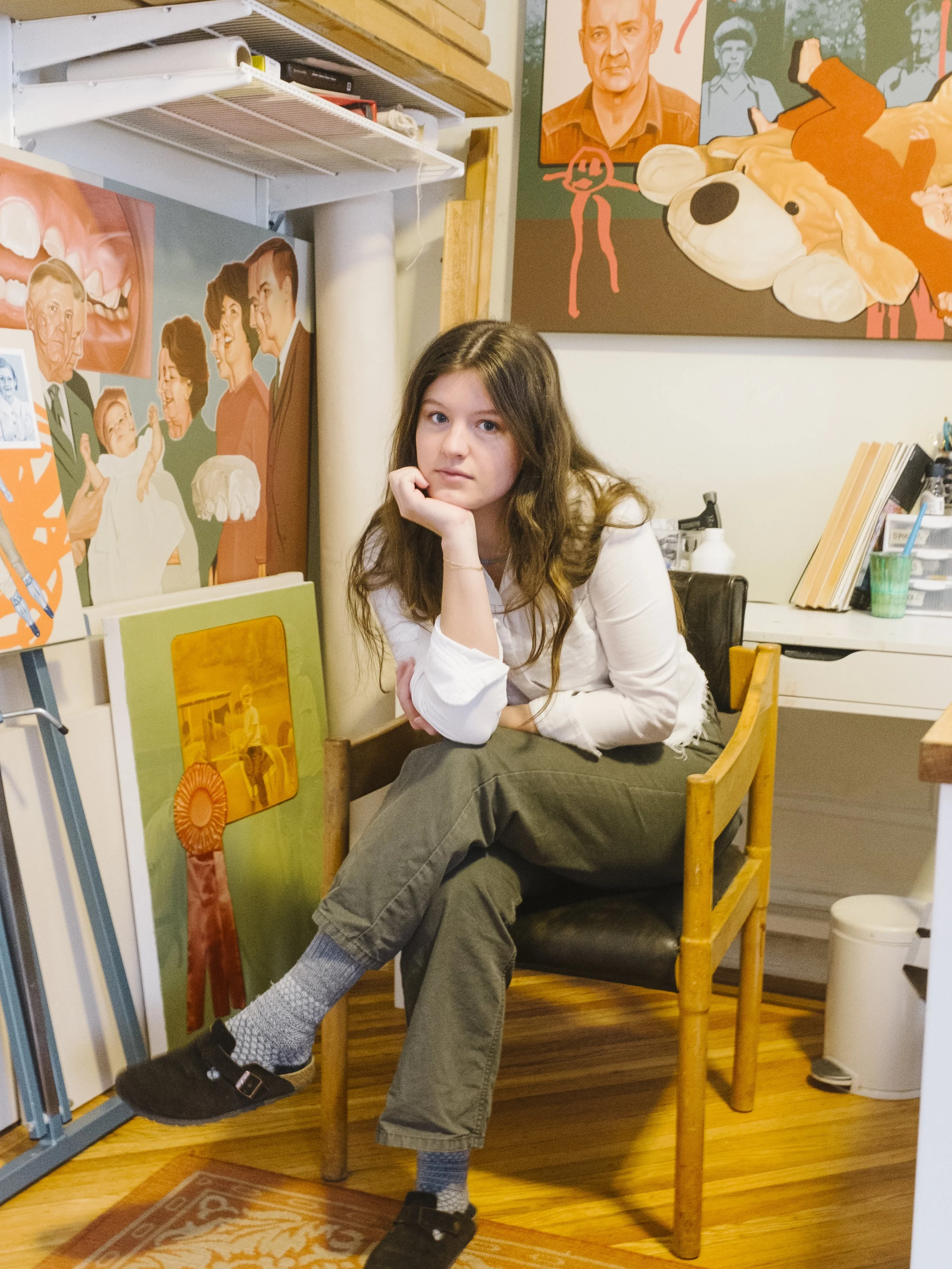 Isabelle Heldenfels is a Brooklyn-based artist whose work examines how domestic archives become vessels of memory, expectation, and identity, transforming these fragments into dreamlike reflections on the American family as both a political and spiritual body. Born and raised in Dallas, Texas, Isabelle’s imagery carries the quiet influence of the American South, drawing on its folklore, religiosity, and vernacular aesthetics. A lifelong artist, Isabelle returned to painting after earning a Bachelor of Architecture from Pratt Institute in 2023.